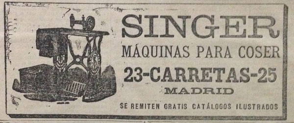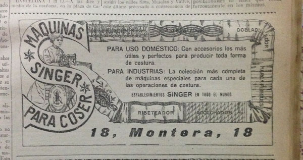 El anuncio de máquinas Singer, actualizado respecto al de 1885.