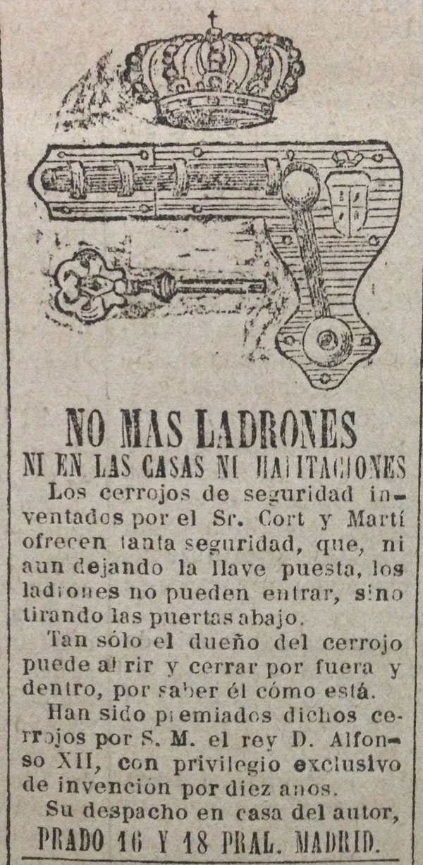 «No más ladrones ni en las casas ni las habitaciones» con una llave que insinúa una pistola.