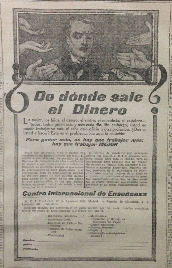 A principios del XX la publicidad se hizo más habitual en las publicaciones españolas.